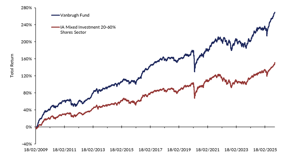 Source: FE fundinfo. 18/02/2009 to 31/10/2025. GBP total return, C Acc units (performance history extended where required). Past performance is not a guide to future performance. The value of an investment and any income from it can fall as well as rise. You may not get back the amount you originally invested.