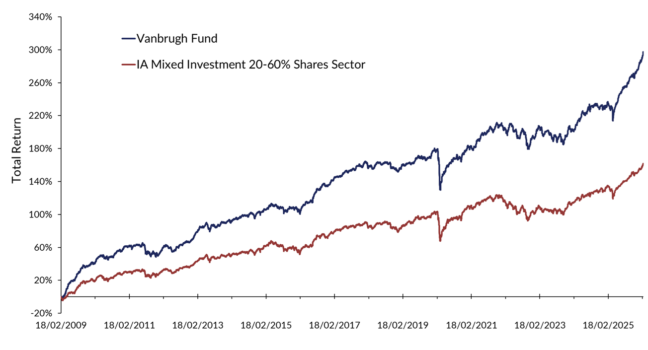 Source: FE fundinfo. 18/02/2009 to 28/02/2026. GBP total return, C Acc units (performance history extended where required). Past performance is not a guide to future performance. The value of an investment and any income from it can fall as well as rise. You may not get back the amount you originally invested.