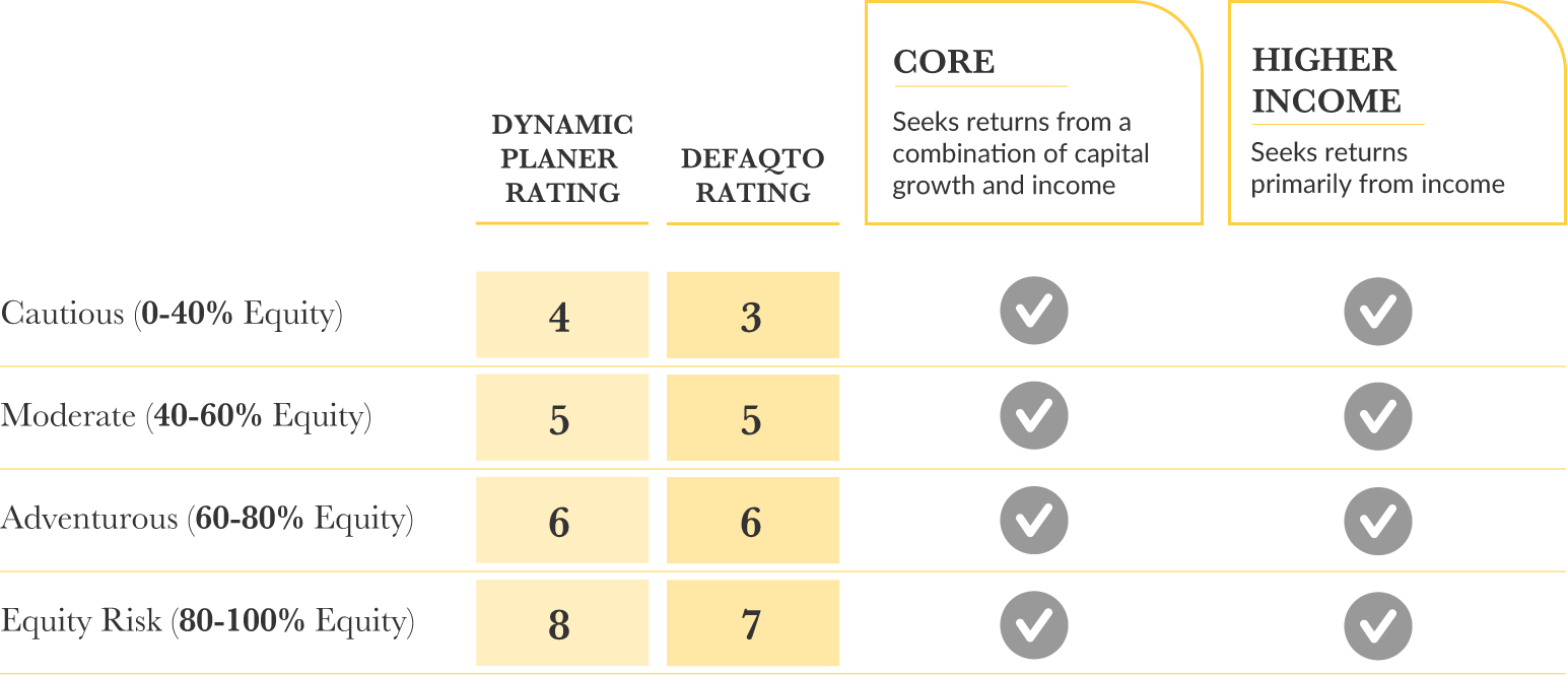 Our range of Archway Model Portfolios spans eight options: four risk levels, each with two portfolio choices.