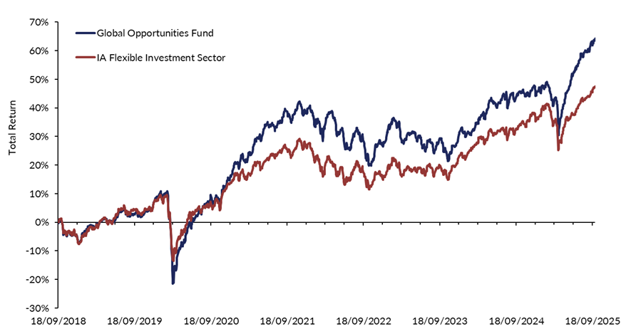 Source: FE fundinfo. 18/09/2018 to 30/09/2025. GBP total return, C Acc units. Past performance is not a guide to future performance. The value of an investment and any income from it can fall as well as rise. You may not get back the amount you originally invested.