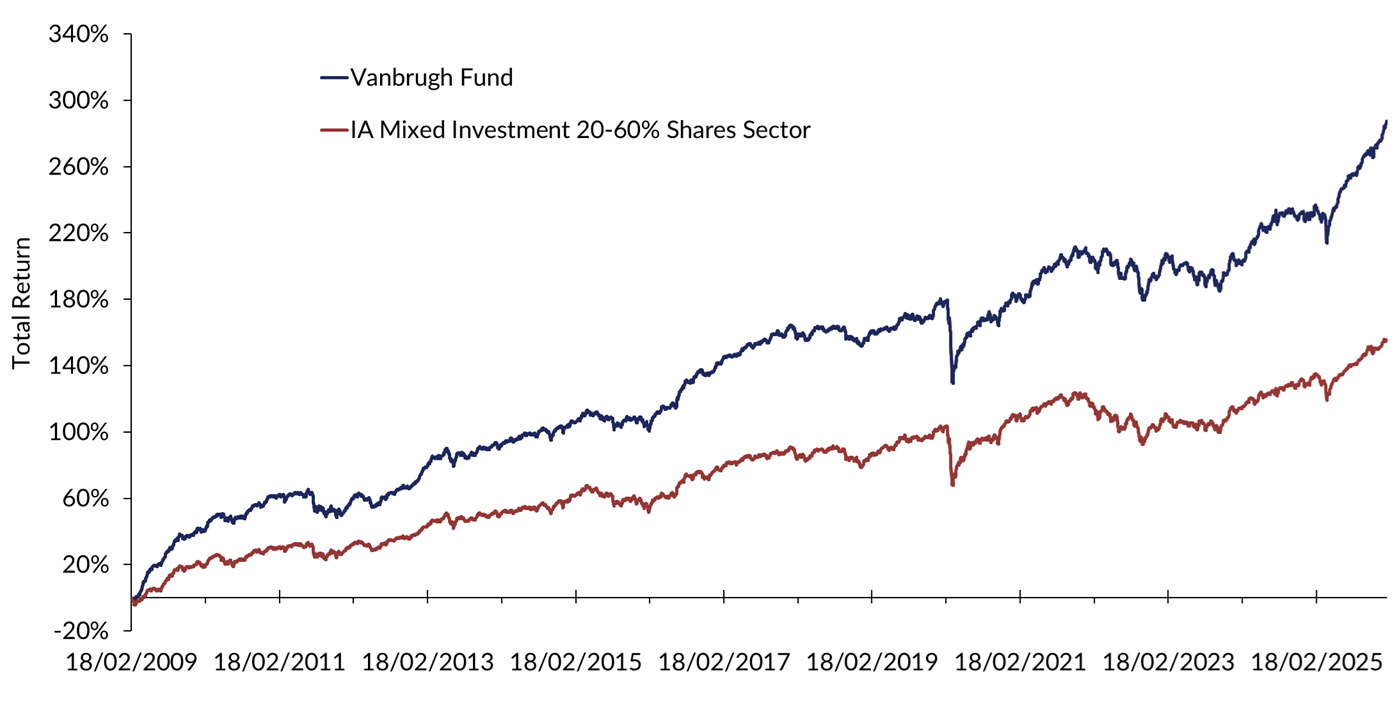 Source: FE fundinfo. 18/02/2009 to 31/01/2026. GBP total return, C Acc units (performance history extended where required). Past performance is not a guide to future performance. The value of an investment and any income from it can fall as well as rise. You may not get back the amount you originally invested.