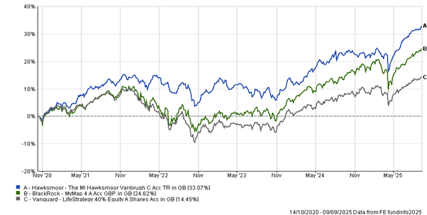 FE fundinfo, 5 years to 09/09/2025